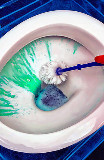 High-pressure water jetting of sewer lines connected to toilets, effectively clearing roots, grease buildup, and stubborn obstructions beyond the fixture.
